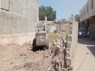 تخریب و تسطیح دیوار خطر ساز در کوچه شهید زکی